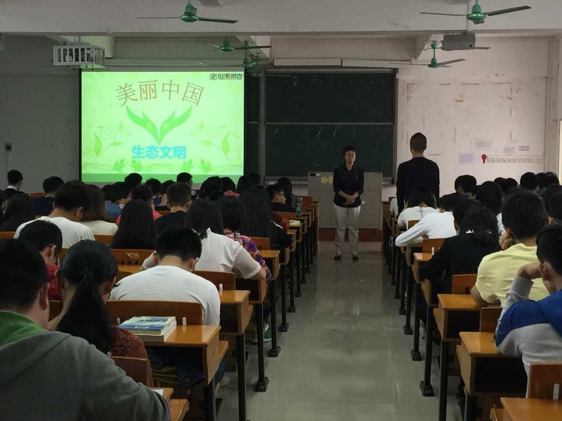 向副书记的讲授,既结合了社会实际,剖析深刻,引人入胜;又阐述理论问题,深入浅出,发人深思。指出“人均生态资源匮乏”“土壤污染严重”“空气污染超标”“国土开发格局不够合理”四个建设生态文明存在的问题。同学们认真听讲,全神贯注,纷纷表示,听完形势政策课后深刻认识了只有把生态文明建设的理念、原则、目标等深刻融入和贯穿到经济、政治、文化、社会建设的各个方面和全过程,才能全面推进现代化,为人民创造良好的生产生活环境。