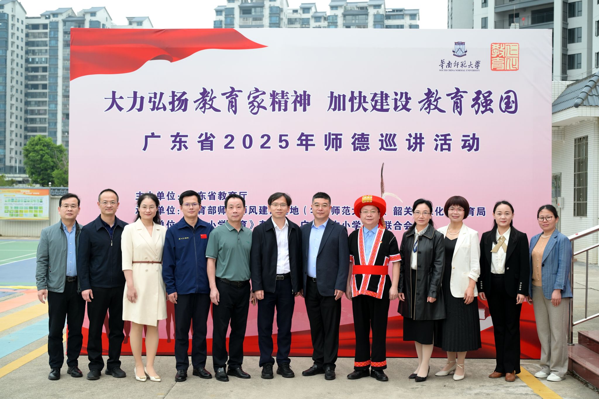 本次活动由广东省教育厅主办,教育部师德师风建设基地(华南师范大学)、韶关市仁化县教育局承办,《中小学德育》杂志社、广东省中小学董事长联合会、韶关市仁化县田家炳小学协办。华南师范大学教师教育学部党总支书记、教育部师德师风建设基地(华南师范大学)副主任华维勇同志;教育部师德师风建设基地(华南师范大学)活动策划与宣传部负责人、《中小学德育》杂志社副社长谢光灵同志;仁化县委教育工委书记、仁化县教育局党组书记、仁化县教育局局长李子初同志;仁化县教育局副局长邓伟强同志;哈尔滨工业大学(深圳校区)党委宣传部副部长陈南坤同志出席了本次巡讲活动。以及来自韶关市仁化县中小学董事长、骨干教师代表共200余人现场参加,全省各地市约50万人次线上观看。