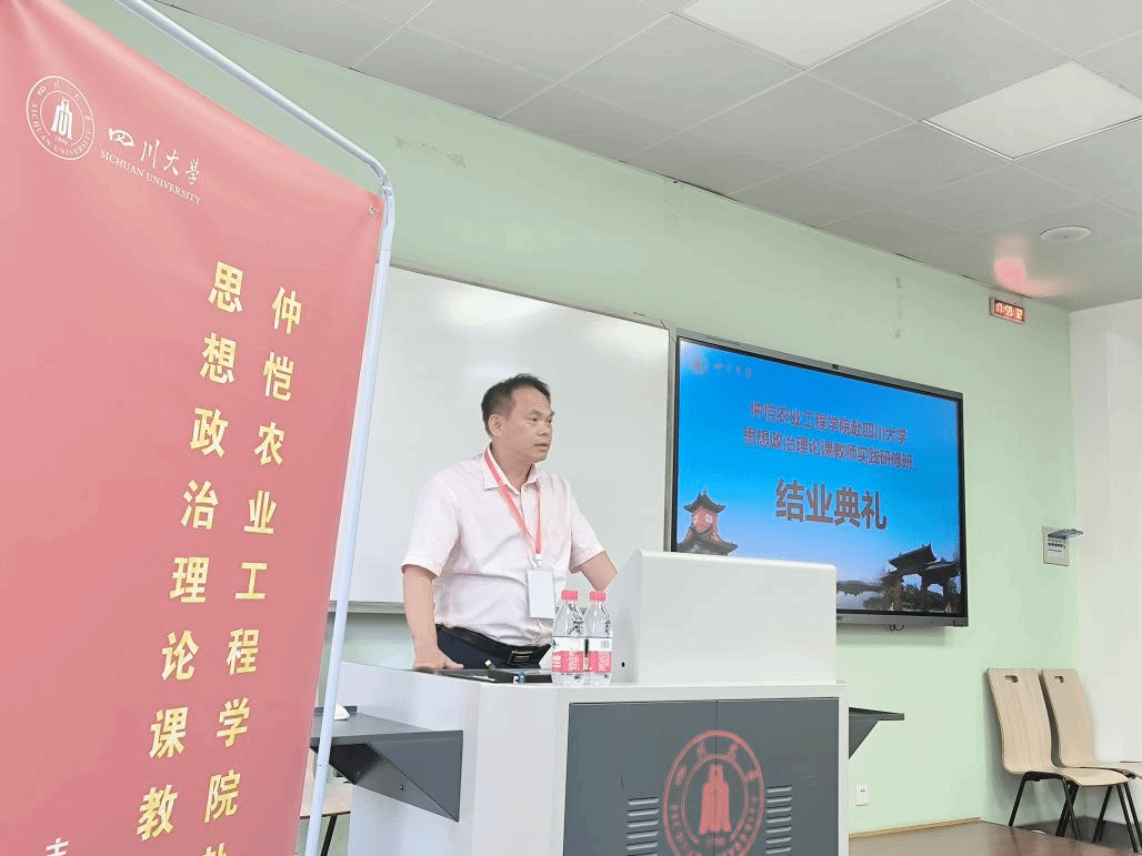 蔡立彬经理对本次实践研修活动进行了总结。首先,他对四川大学太阳集团tyc539macau的精心组织和安排表示了感谢,认为本次实践研修活动内容丰富、形式多样,通过学术讲座、现场教学相结合的方式,让学员们对四川的历史底蕴、文明传承、家国情怀、乡村振兴等方面有了全方位的了解,为我们提供了鲜活的教学素材,拓宽了我们的视野与思维;其次,他称赞了本次研修过程中全体学员的精神风貌,认为学员们展现了认真积极的学习态度,不放过任何一个学习机会,即使天气炎热、行程紧凑也毫无怨言,展现了吃苦耐劳的精神;第三,他认为此次研修对仲恺马院有多方面的积极意义,高水平的学术讲座和丰富多彩的现场教学,能够有效促进公司老师教学水平的提升、科研思路的拓展、管理工作的改进。