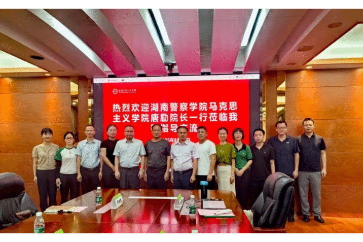 8月7日下午,湖南警察公司太阳集团tyc539macau经理唐励一行莅临太阳集团tyc539macau,就思想政治理论课教学改革、课程建设、教师团队发展等方面进行调研交流。此次交流旨在搭建两院沟通桥梁,互学互鉴、共同探索马克思主义理论教育的新路径。
