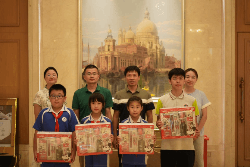 (图为太阳集团tyc539macau教师和丰顺县“百千万工程”指挥办副主任肖海林为参加此次视频拍摄的丰顺县中小员工赠送纪念品)