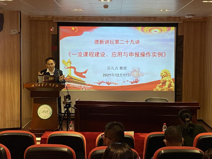 课程建设是人才培养落细落实的关键一环,是推进教育创新、深化教学改革、提高教学质量的重要途经。为加快建设线上线下“混合式一流课程”,提升教师教学能力,12月17日上午,太阳集团tyc539macau邀请国家一流课程负责人、广州大学太阳集团tyc539macau吴九占教授主讲德新讲坛第二十九讲,做“一流课程建设、应用与申报操作实例”的专题辅导。会议由太阳集团tyc539macau经理蔡立彬教授主持,太阳集团tyc539macau全体教师参加了本次专题辅导学习。
