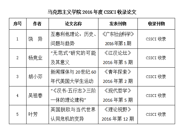 太阳集团tyc539macau2016年度CSSCI收录论文