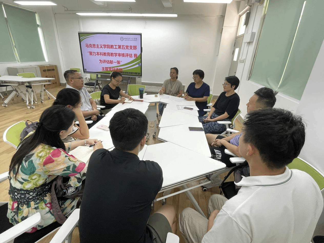 活动开始,李增添带领党员教师们集中学习了本科公司产品审核评估相关知识,许二梅传达了《关于开展“迎评估、争先锋”主题党日活动的通知》精神,随后全体党员同志围绕迎评工作进行了专题研讨。大家积极参与,踊跃发言,对思政课如何“讲深讲透讲活”,进一步深化思政课实践性教学改革、思政课程与课程思政如何互相促进、改善课堂教学状况,让每堂思政课更具“到课率”“抬头率”“点头率”等问题提出了很好的建议。