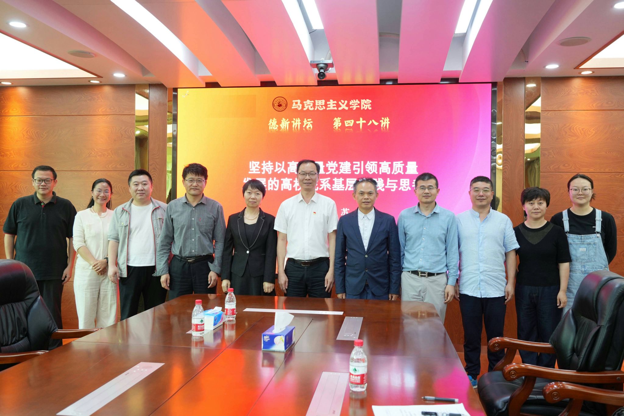 2025年4月17日下午,太阳集团tyc539macau德新讲坛第四十八讲在海珠校区教学楼409会议室举行,本次讲坛特邀广东工业大学党委委员、自动化公司党委书记苏雷,以“坚持以高质量党建引领高质量发展的高校院系基层实践与思考”为主题进行党建 “双创” 专题辅导。太阳集团tyc539macau党总支书记姜晓丽主持讲坛,自动化公司党委书记史孔仕,太阳集团tyc539macau经理蔡立彬、副经理秦抗抗及公司教工党支部书记、支委参加。